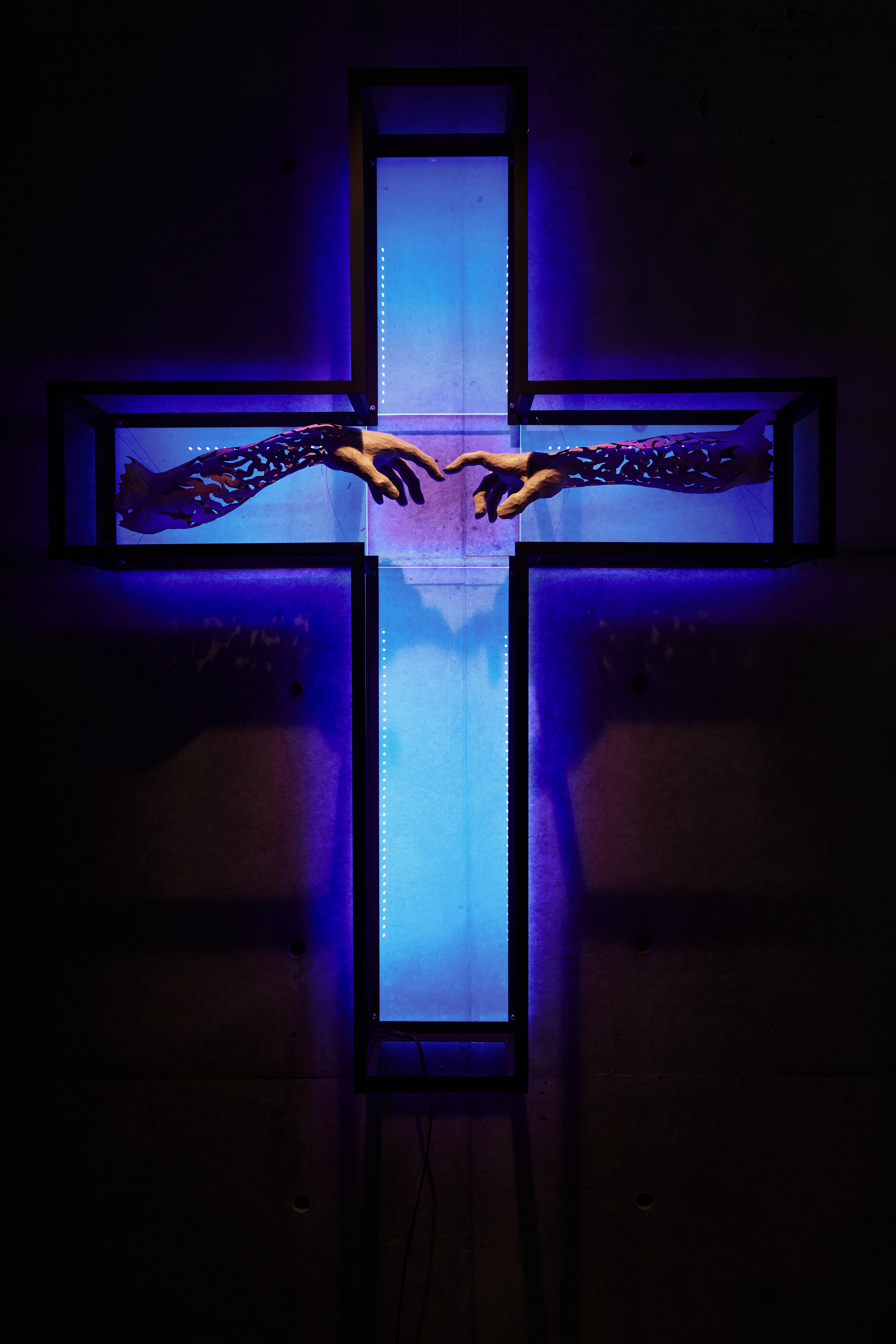 21世紀、現状の国際政治の権力構造では起こらないとされていた大規模な消耗戦による戦争が、第二次世界大戦の悪夢を引きずるかのような形で再び現実のものとなりました。大野は本展において、暴力的な「生」と「死」が混在する世界は、はたして「神即ち自然」として実存するのか、という問いかけを基本概念とし、彼岸と此岸という死生観の境界領域を表出させ、ICHION CONTEMPORARYの6層に分かれた安藤建築に回遊式インスタレーションを構成します。