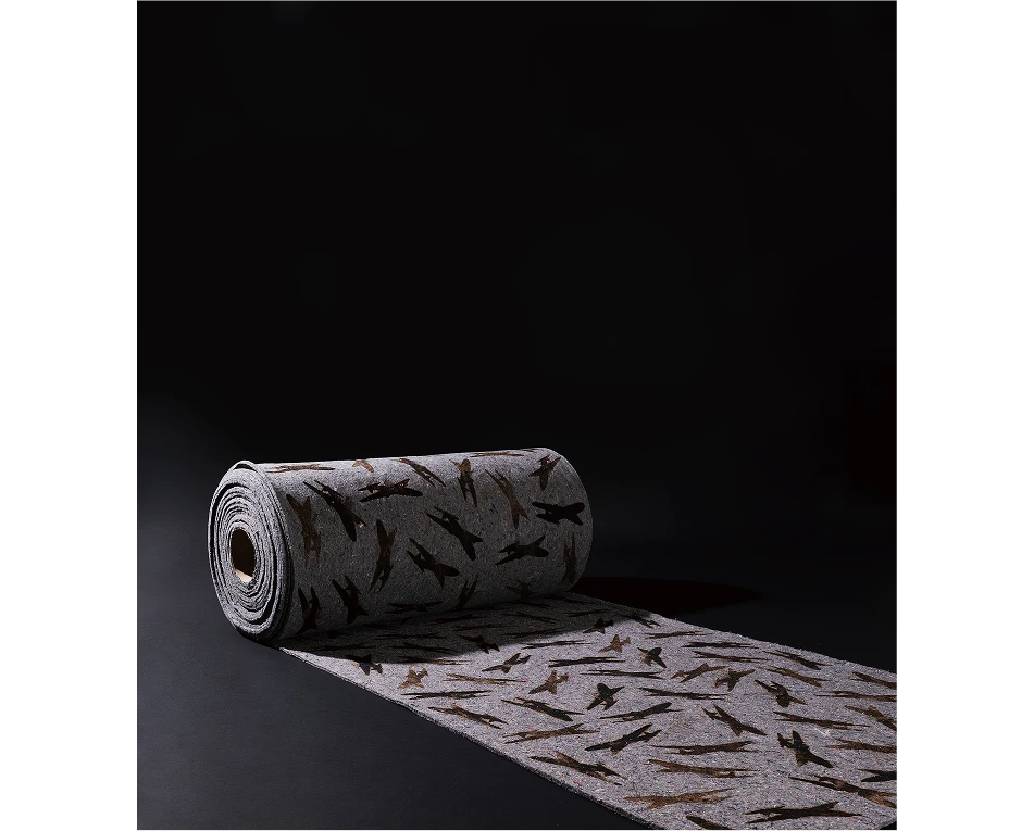 持田総章、1934年東京都生まれ。版画家、大阪芸術大学の名誉教授。関西エリアの代表的な現代美術グループである「Ge」に所属、メインメンバーとして活動を行なっている。制作のテーマであるLOCATIONシリーズ「空気」は、長年の継続したコンセプトである。基底材のフェルトを加熱・炭化する事で、フェルトに内包されている空気を遮断もしくは拒絶する。この焼き印 (brand) を押す行為が、制作の主たる作業である。空気の含む所と含まない所、空気の内包と拒絶が画面を構成している。 モチーフは飛行機で、子供の頃に誰もが一度は夢に見た飛行は現実のものとなり、人間は時空の観念の変革を余儀なくされた。飛行の実現は想像と幻想を実体化し、新しい認識と行動に利便性をもたらしたが、一方でその実体は決して「平和利用」のみのものでなく、「戦争に使われている」現実がある。この選択は我々自身にゆだねられている。