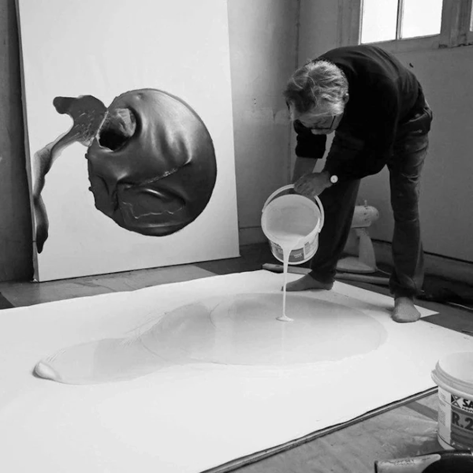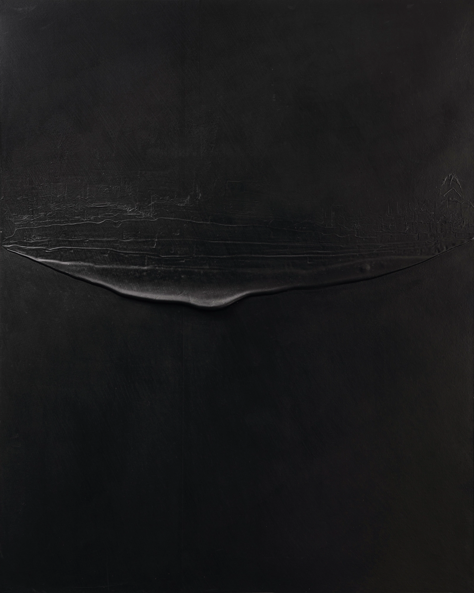 松谷武判、1937年大阪府生まれ。日本の現代美術家。1963 年具体美術協会会員となる。ボンドで造形した画面を鉛筆で黒く塗りつぶす手法を確立し、2017年のヴェネツィア・ビエンナーレではメインセクション、2019年ポンピドゥー・センターでの個展と世界の第一線で活躍中。